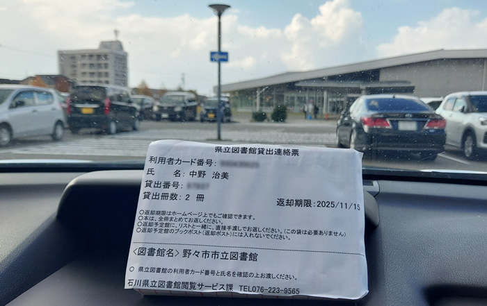 ということで、石川県立図書館の本を野々市図書館で受け取ることができるのです。