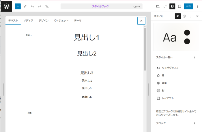 レイアウト(テキスト、メディア、デザイン、ウィジェット、テーマ)もすべておかしくなっている。